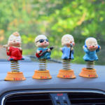 Ceramic Singing Monk Buddha with Shaking Head Spring Showpiece for Car Dashboard Decorative Showpiece