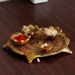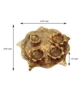 Pooja Thali is with an antique finish so looks very beautiful and use for the purpose of worship and for home decoration. It’s designed to look traditional stylish and inspiration from the day’s of royal touch. This is a perfect size of Pooja thali You will Get Every Thing In This Size Like Three Bowl, Diya, Incense Holder, Dhoop Holder, And Beautiful Look EASY TO CLEAN It is easy to clean the Pooja Thali. Made of fine quality material, it doesn’t require high maintenance. Just clean them with soft dry clothes and watch them shine
