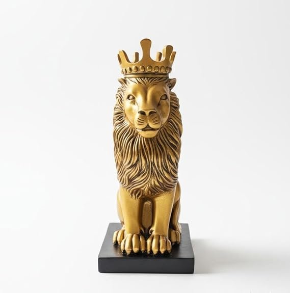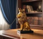 Royal Lion Statue with Crown – Golden Decorative Showpiece for Home Décor, Living Room, Office Desk & Gift Item