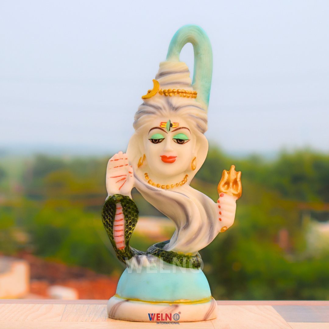 This ornamental murti can be utilized as table decor, showcase decoration, or interior design accessories for pooja mandirs. The Hindu Supreme God ensures the cycle of life by destroying evil, ignorance, and death. Lord Shiva is a highly revered Hindu deity, who is part of the great holy Trinity (Brahma, Vishnu, Mahesh/Shiva – the Creator, the Preserver, and the Destroyer). ‘Shiv’ means welfare. Shiva is not only a Lord but is also considered the prime God in the Panchdev Pujan. In the Shiv Mahimna strict, Pushpadant has described him in a wonderful manner by mentioning him as unborn, the reason for everyone’s existence, creator, nurturer, and destroyer. He is known as Mahakal – One who is beyond Time.