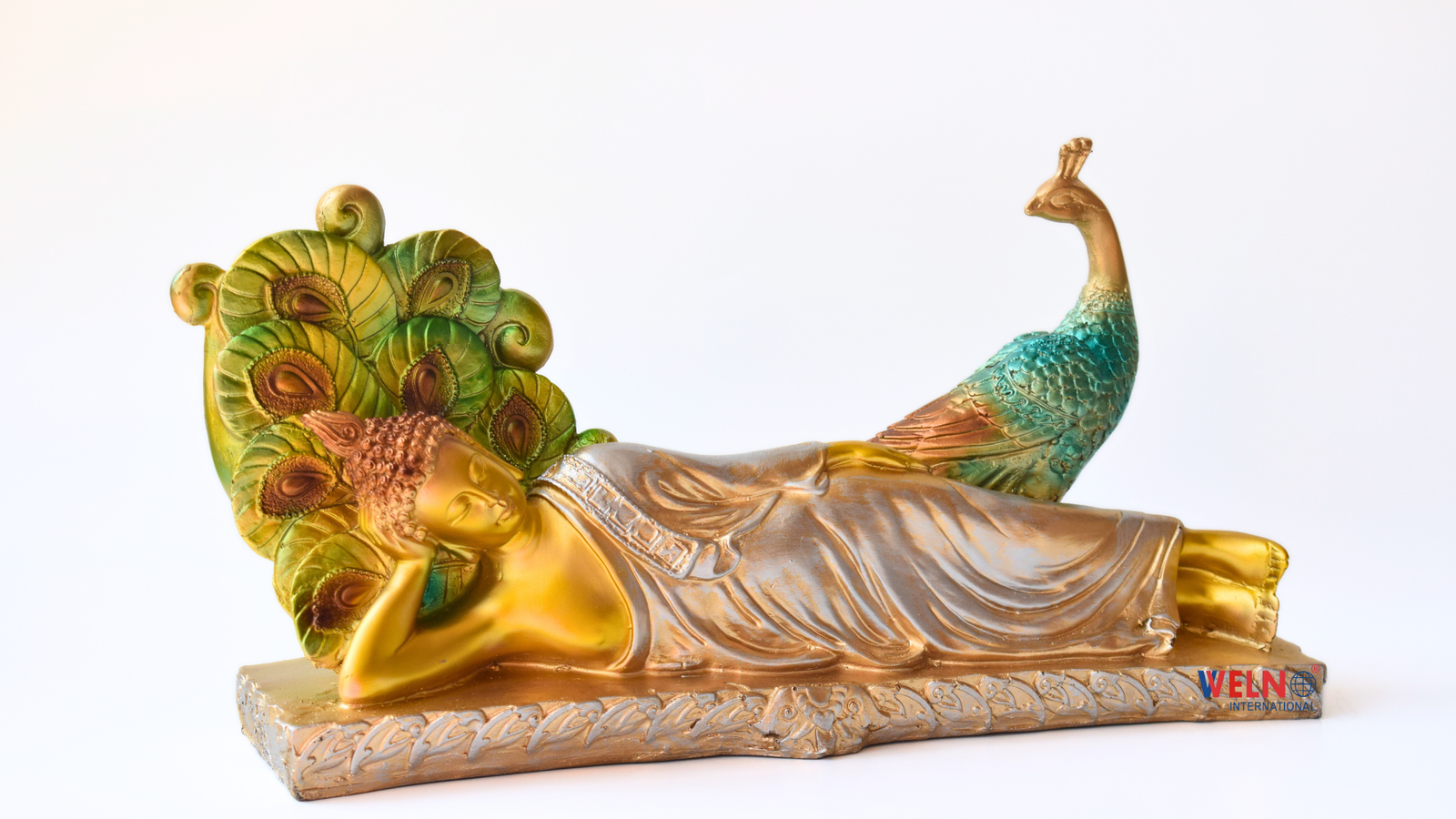 Unique Laying Buddha with Peacock Statue Decoration Items for Home Decor Mandir Temple Pooja Room Living Room Table Office Decorative Gifts